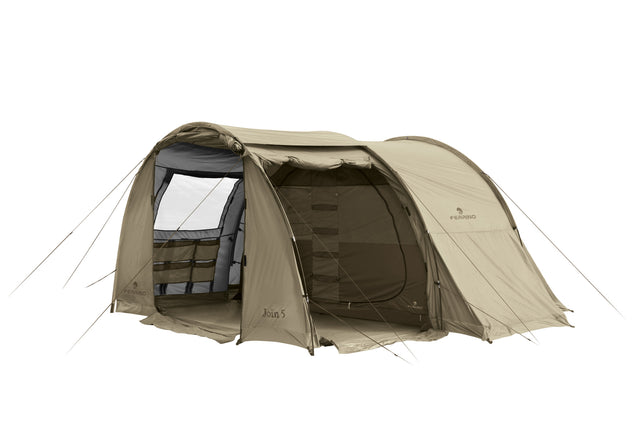 Join 5 es una tienda diseñada para acampadas de temporada. La tienda está diseñada para cinco campistas que quieran disfrutar de una habitación amplia y con muchos accesorios, un gran vestíbulo y dos espacios específicos para guardar el equipaje. Join 5 se monta rápida y fácilmente, por lo que es una opción excelente para acampar en familia o con los amigos.